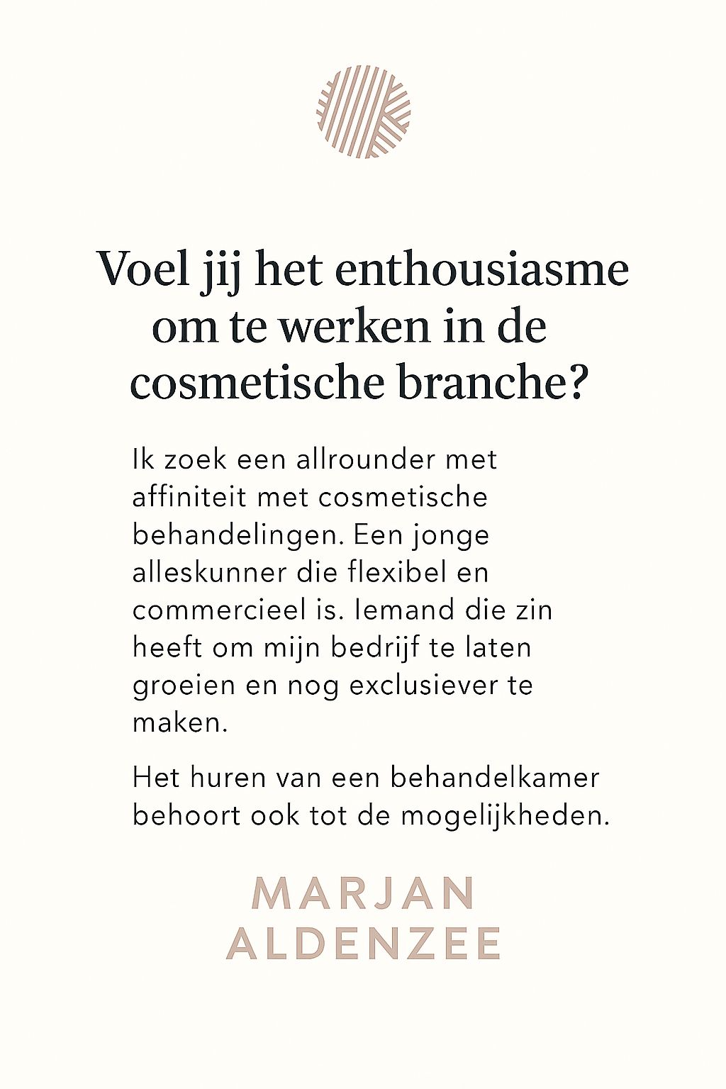 Met interesse voor mooie mensen werk ik met veel plezier als injectable specialist. Mijn ervaring heb ik opgedaan in verschillende klinieken en mijn doel is om u blij te maken met een goed advies en behandeling met Botox, hyaluronzuurfillers, liftdraden of bovenooglidcorrectie.
